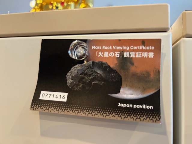 そして、日本館予約がとれていましたので行きました。火星の石に触り証明書いただきました。
