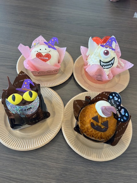 季節は巡る 在留資格サポートセンター 2025.10.30 まだまだ暑い日々が続いているので季節が変わっているのに、今日も半そでのシャツで事務所にいますが。。(笑) 先日は同業者の先生が事務所に来られるのにティ―タイム用にケーキを用意しました。ハロウィーン仕様のケーキがケーキ屋さんにずらり。ハロウィーンの季節! いつの間にか秋に季節が巡っていることを実感しました。 見た目の楽しさだけでなく美味しかったです。 今月は同業者の先生方と飲み会や、事務所にお越しいただいたり。。お会いする機会が多く、嬉しいです。